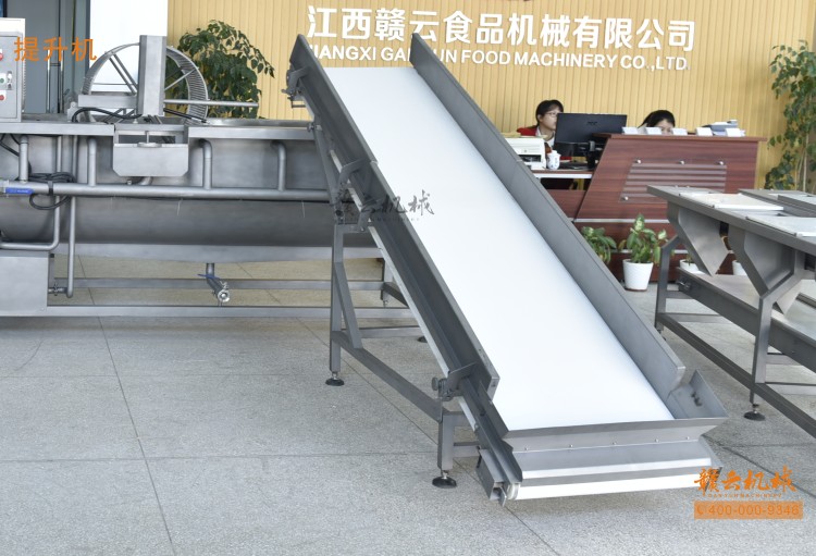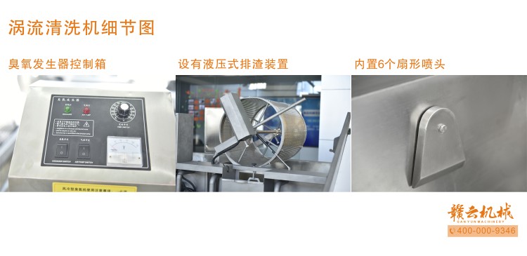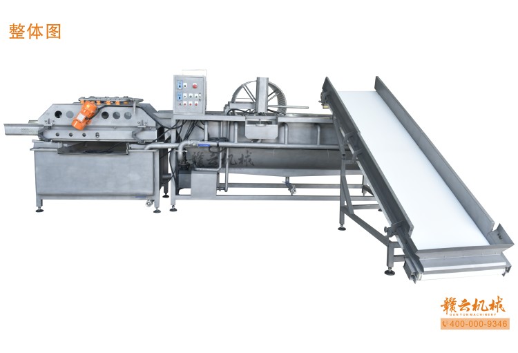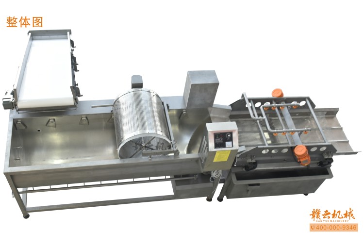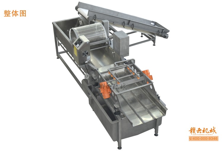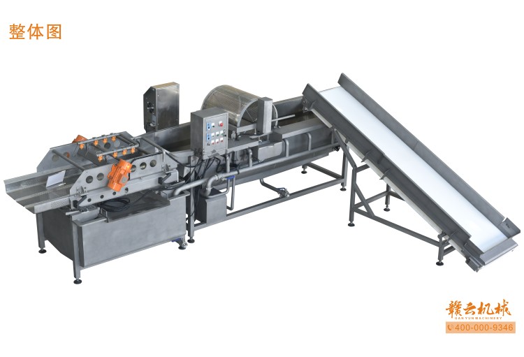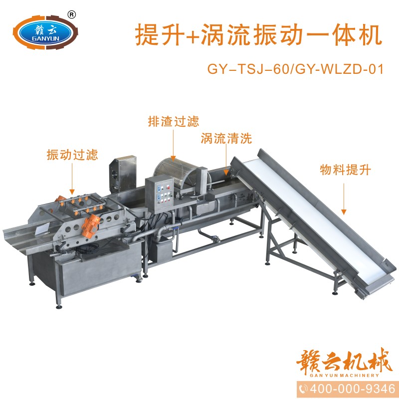本機由皮帶提升機+渦流振動清洗機組合而成,皮帶提升機主要用于將切割出來的蔬菜提升至渦流清洗水槽內,經(jīng)由6個扇形噴頭高壓噴水形成水槽內水流成渦流狀而命名為渦流清洗,渦流清洗機上端設置有液壓式排渣滾筒裝置,并引導蔬菜向高頻振動機方向移動,此外渦流清洗機還裝置有臭氧發(fā)生器,主要用于去除農(nóng)藥殘留之用,高頻振動機上端設置有多個噴頭,對蔬菜進行二次沖洗,達到清洗干凈的作用。振動篩振動加快抖落水珠和細小顆粒,使得所清洗出來的蔬菜能直接用于真空包裝或食堂熟食加工之用。與本套設備配合使用的還有前期的數(shù)字切菜機和蔬菜分選挑選機。贛云機械,掌握肉丸加工成套設備,中央廚房凈菜設備核心技術。咨詢電話400-0009346
