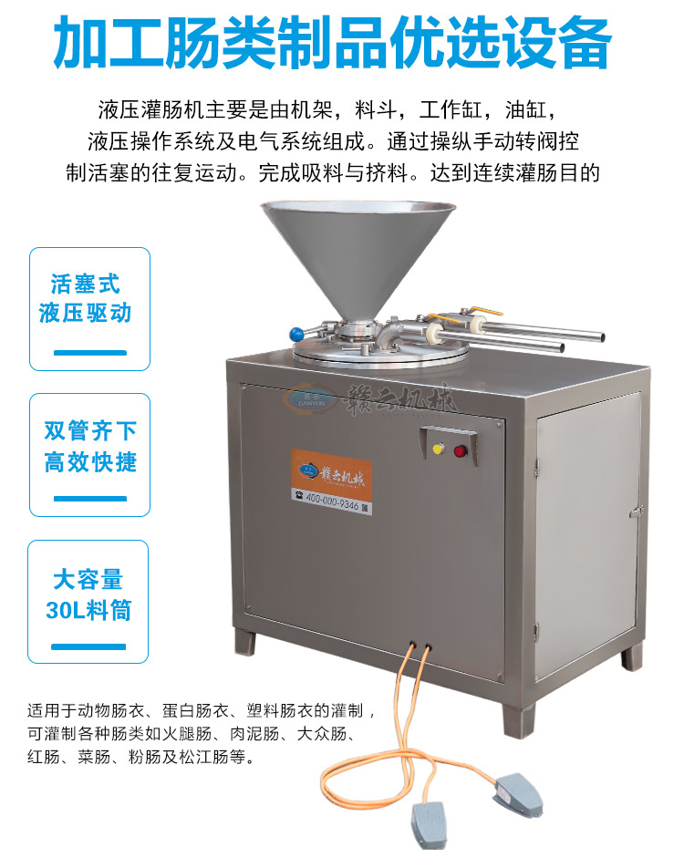 肉制品前處理->專用灌腸設(shè)備->30升液壓灌腸機 | |||||||