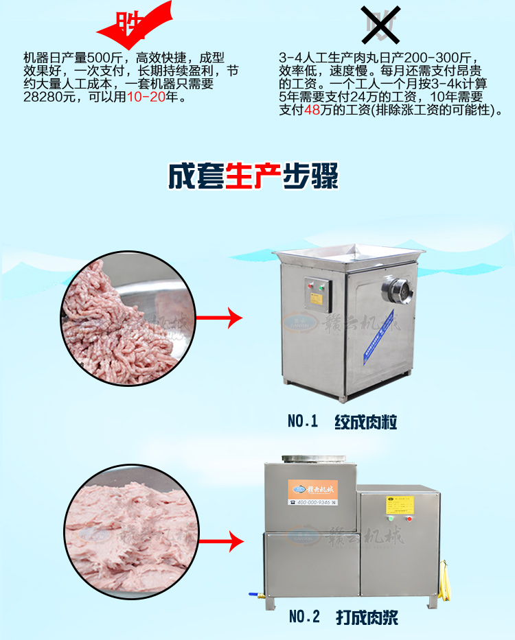 肉丸成套設(shè)備->實(shí)心丸子成套設(shè)備->500斤實(shí)心肉丸成套設(shè)備(定制非零元) | |||||||