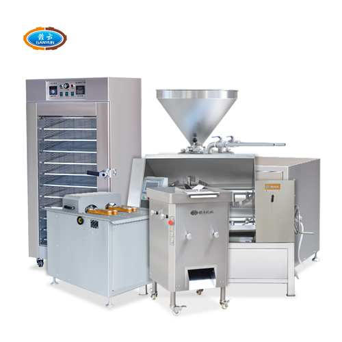 針對本地腸、臘腸、香腸、廣式香腸等生產(chǎn)加工設(shè)備,整套包含切肉機(jī)、拌餡機(jī)、灌腸機(jī)、扎線機(jī)、烘干機(jī)。
